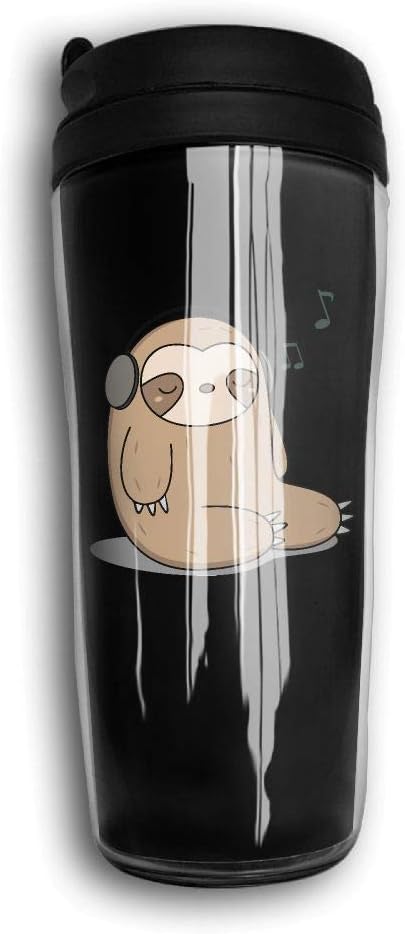amazon com funny kawaii cute sloth listening to music 12 oz curve coffee cup bottle travel mug kitchen dining