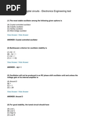 MCQS From CareerRide (Oscillators, Digital Circuits) | Electronic Oscillator | Logic Gate